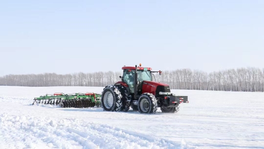 近日,在友誼分公司第五管理區(qū),四臺(tái)大馬力機(jī)車正在進(jìn)行耙雪、促融、散墑作業(yè),加快積雪融化速度,6天完成耙雪作業(yè)2萬畝,通過物理耕作提高土壤表層溫度。