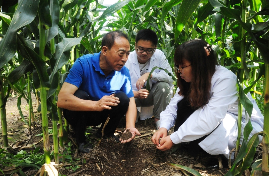 王貴滿與科研人員一同檢查土壤情況。 資料圖